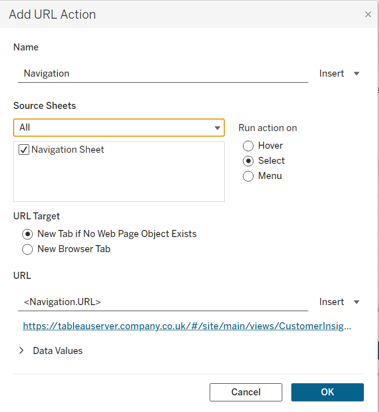 Navigation between workbooks on Tableau Server/Cloud can also be integrated into the dashboard UI using URL-linked images or URL actions. The problem in this multi-workbook case is that the navigation logic is embedded separately within each workbook, making scalability difficult and increasing maintenance time: whenever you want to add, remove, rename, or relocate a dashboard, every single workbook file has to be edited and republished with the updated logic.