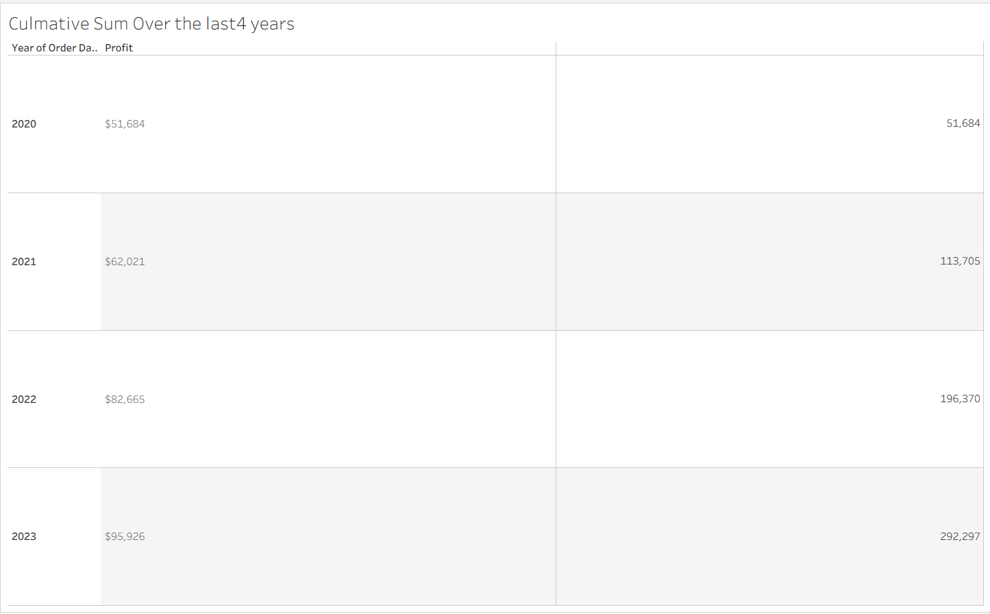 Assume we want to plot the increase in profit year by year, and we end up getting the total profit made across the last 4 years.
