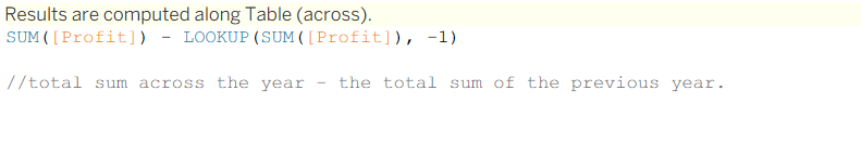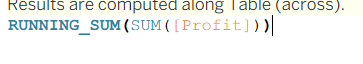 And so we use a lookup to take the total profit of the previous row and subtract that from the current row (SUM([Profit])).