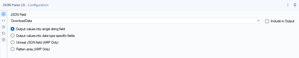 Now we need to extract the access token from the response. We use the JSON Parse Tool and connect this to the Download tool to parse the `DownloadData` field.