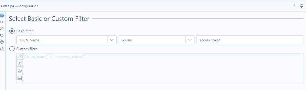 Then we use a Filter tool to keep only the row containing the access token (look for `JSON_Name = "access_token"`)