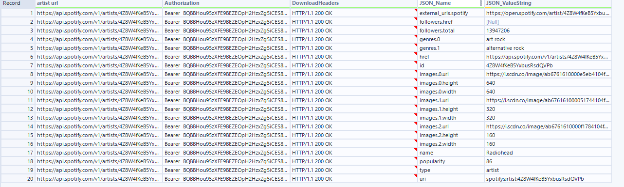 Before diving into Alteryx, you need to understand what you want to get out of the API. For our demo, we want to retrieve detailed information about a specific artist, including their popularity, genres, follower count, and profile images.