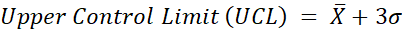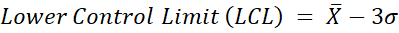The upper and lower control limits are usually set at 3 standard deviations either side of the central line, so can be calculated as follows: