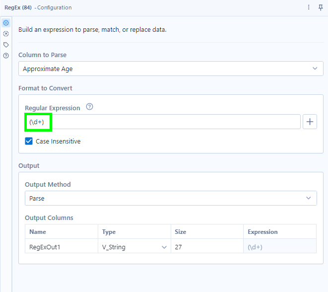 - Parse: Extracts a given expression from a string. To extract each person's age from the Approximate Age field and output an integer data type, we can add an expression in parentheses: