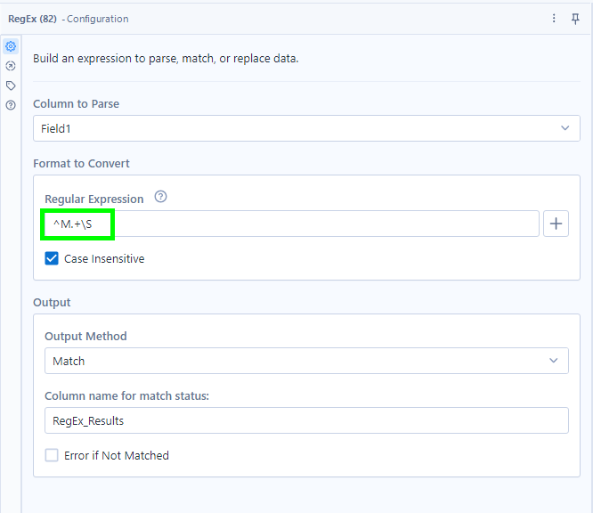 An Alteryx workflow using RegEx will look something like the image below: A given tool (Text Input, in this case) on the left that feeds into the RegEx tool on the right.