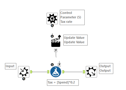 They allow us to split incoming data into separate batches, and enable different logic to be used on different parts of the input. Similarly to a FOR loop in Python, you can execute statements over a sequence depending on the outcome being sought. This example applies a tax rate to a field, depending on how the tax rate would vary between states. Batch macro's require a control parameter somewhere within it.