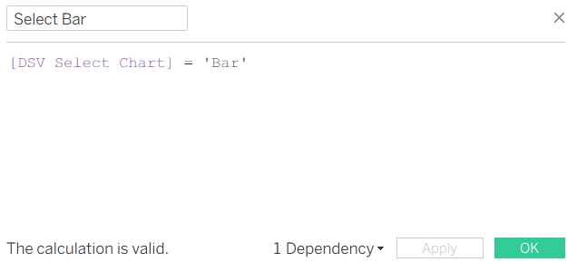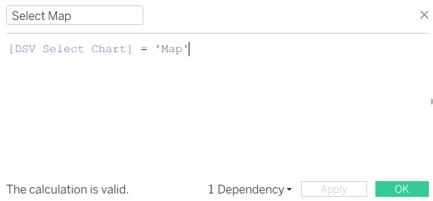 But what's the logic behind all of this? How do these measures know which one is a bar chart and which one is a map? Well, technically they don't know which one is which. Essentially, when you created your measures, you created two true or false statements where you only show the true values. By assigning the visibility of your charts to one of these measures, you assign each chart that true value. When you select that value in the parameter, it is true so the chart is shown and when a different value is selected in the parameter, it is false so the chart is not visible. So if you flipped your values around by accident, assigning your map to be visible on the select bar measure, then that would explain why selecting bar in your parameter would show your map instead.