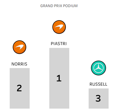 If you're interested in sports analytics, chances are you've looked at podium finishes or at least top 3 results. Maybe you've wondered how to show this creatively or had the thought about creating a podium-style chart but not known how to go about it. Well, today's your day. In this blog, I'm going to take you through the steps to create a lovely podium illusion so you too can be a winner. I'm using a dataset on Formula 1 in 2025 (created after a bit of data prep!) but use whatever sports dataset you'd like. To be able to create a podium-style chart in this way, you will need something in your dataset that is ranking your players/teams and this will need to be in one field. Now, let's get to the start line!