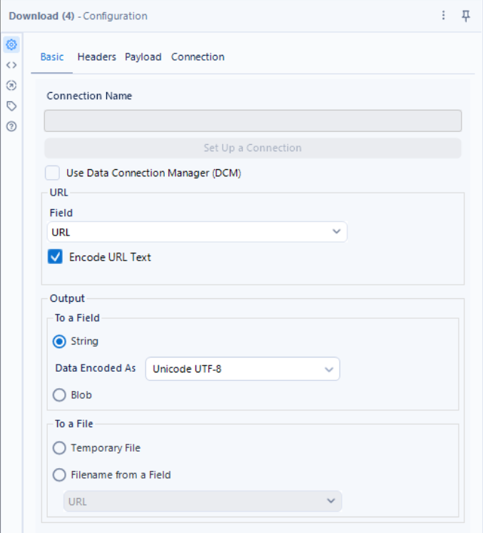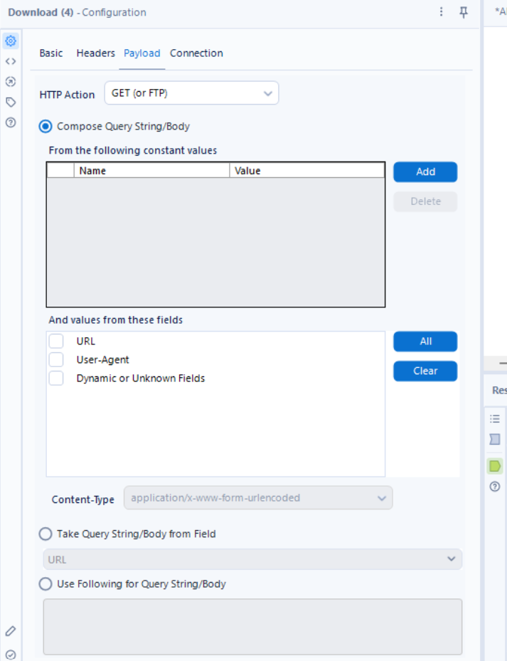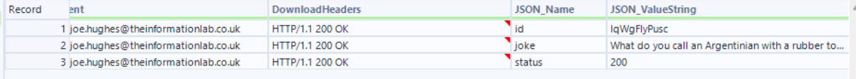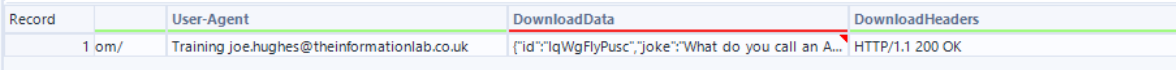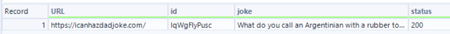 We then use a download tool (can be found in the developer tab) to retrieve the data. Ensure that the correct field is being used for the URL. In this particular case, the documentation requests that the User-Agent field is used as a header and to obtain a random dad joke we need our HTTP action to be set to GET.
