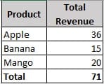 The data for the new measure Total Revenue based on Products would look like this: