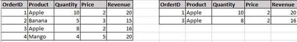 If you later filter by “Product = Apple,” it doesn’t recalculate the column. It will just filter the already calculated values for Apple. Filters decide which rows you see, not how they were calculated.