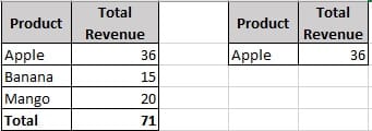 Revenue for Banana = CALCULATE([Total Revenue], Products[ProductName] = "Banana")