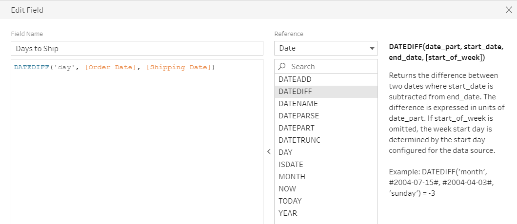 We've just finished up a thrilling day of Tableau Prep with Carl. During one of the exercises (Preppin' data - 2021 - week 2), there was a bit of a split amongst the cohort about how we handled the 'Days to Ship' step. Some of us used the DateDIFF function, whereas others opted to subtract the order date from the shipping date. In this particular instance, both methods actually rendered the same results, as we were only looking at the change on a day level. However, this is the only timeframe where the two are interchangeable. Therefore, it is worth getting into the habit of using DateDIFF in order to be able to handle other units of time.