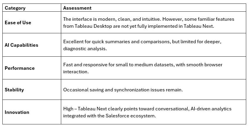Although Tableau Next still needs refinement in technical stability, it already demonstrates how users will work with data in the near future: