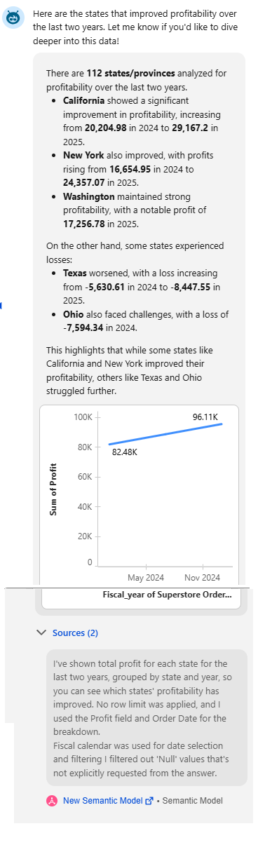 An interesting aspect of Tableau Next’s Agent is the “Sources” section, which appears below every response.