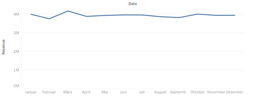 The monthly revenue stayed around the same amount all year, without any seasonality