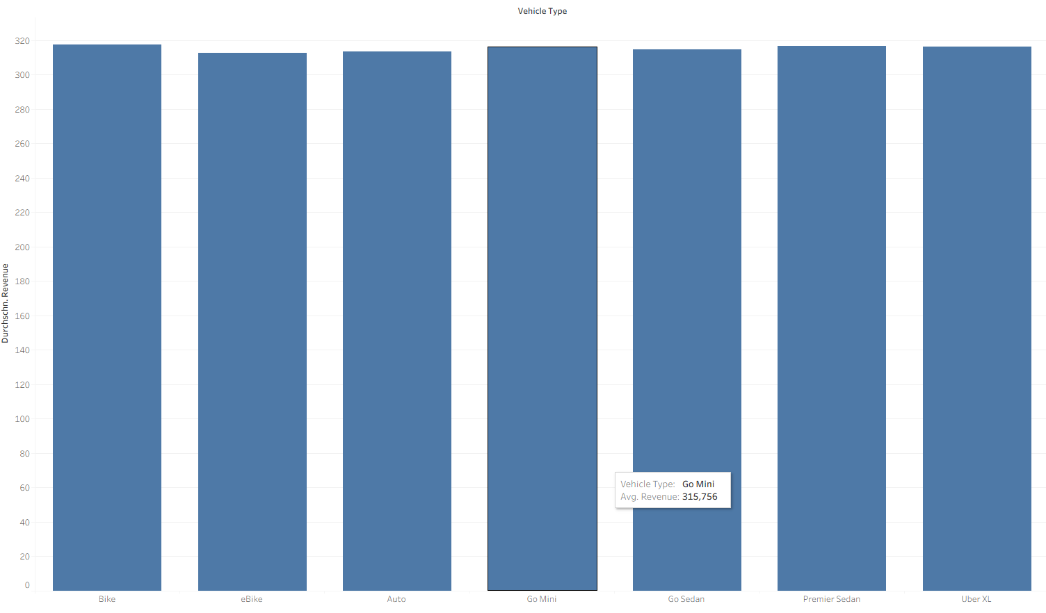 Here we also see an almost constant revenue for all vehicle types. If this would be true, it shows a very simple price modeling by uber.