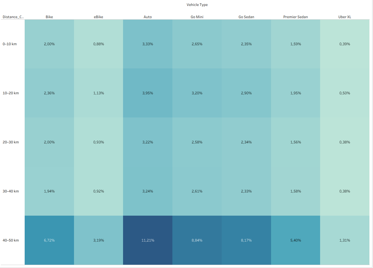Heatmap: Number of Booking by Vehicle Type and Distance