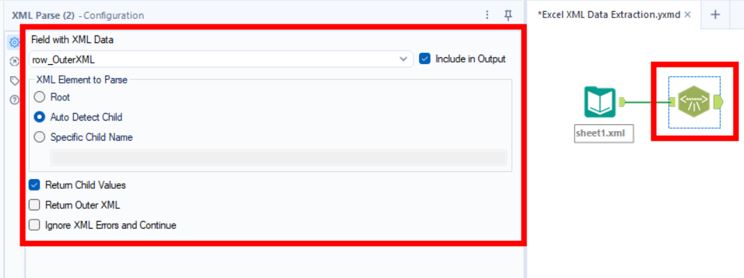 - Use the XML Parse tool down with the following config to convert XML data into a readable format