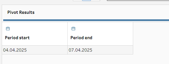 I will use Tableau Prep to create the final dataset. First, let's pivot the period table so that the start and end dates are in separate columns.