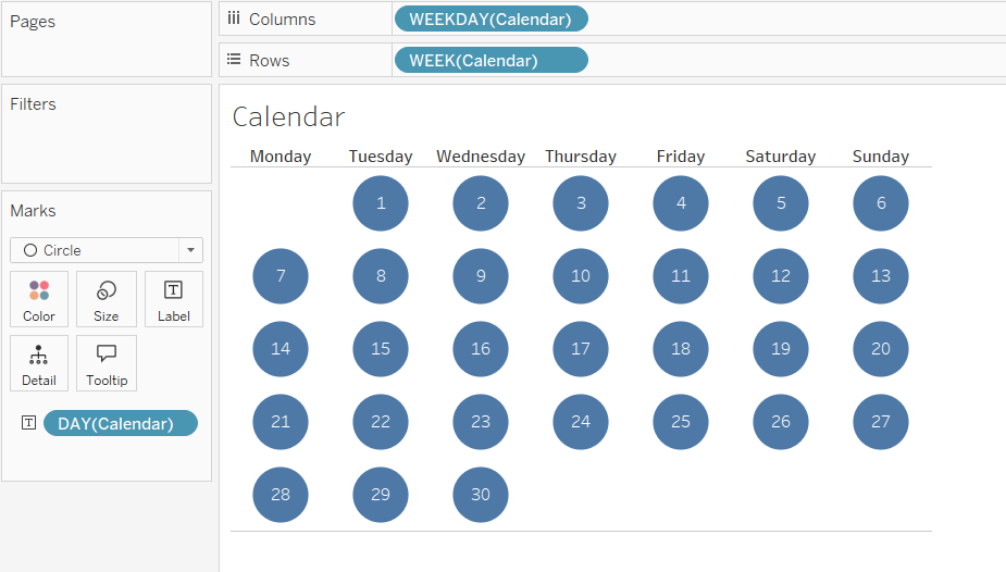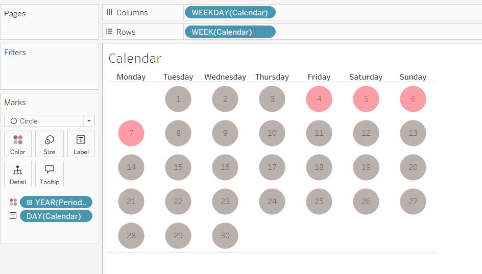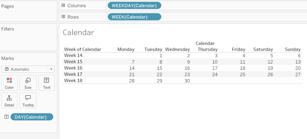 We kept the exact start and end dates and highlighted the period in the calendar without losing the calendar values. Now, we're moving to Tableau for visualization.