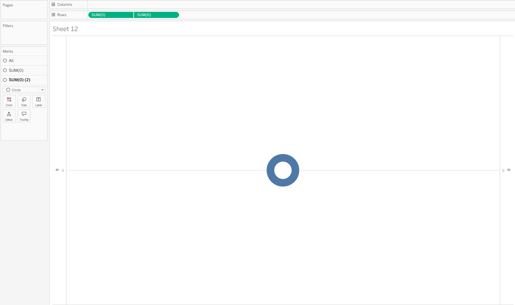 0in the Rows shelf and press Enter to create a dummy field. - Repeat to create a second one.