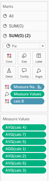 - Drag Measure Names to Colour and Measure Values to Angle in the All Marks section.