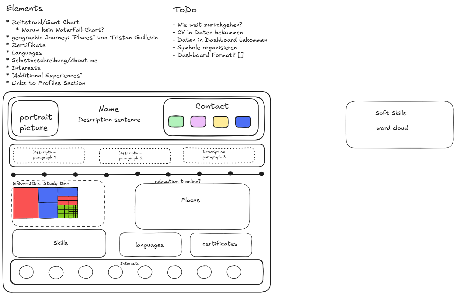 The first one was for all analyses concerning the time aspect of the CV plus education institutions. The second one was for softskills. Then I worked through the sketched elements one after another.