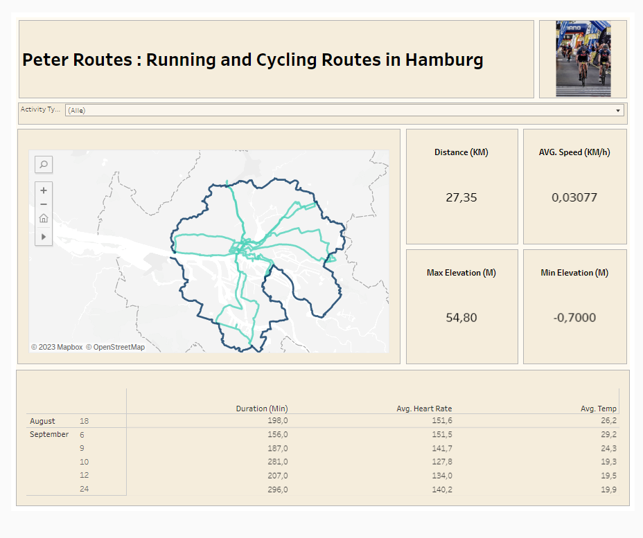 The primary objective was to construct a Tableau dashboard to visualize the routes. I had roughly 90 minutes to accomplish this. As anticipated, I couldn't fully realize my vision within that timeframe, but I came close. After the presentation, I spent some additional time refining the dashboard and made a few enhancements to improve its appearance.