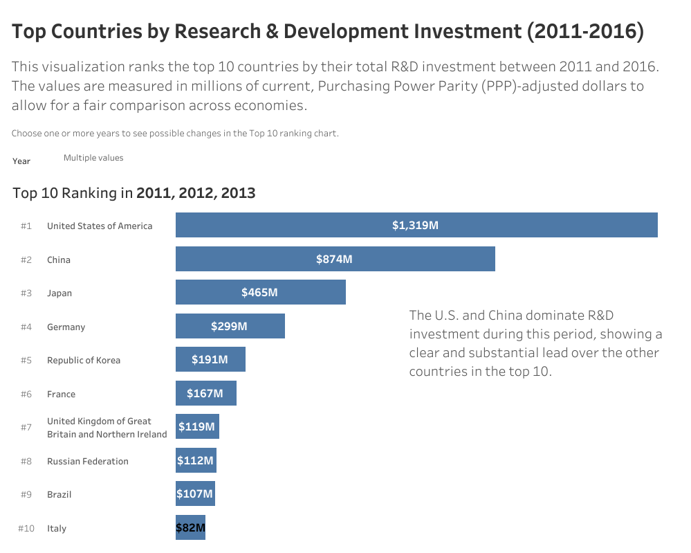 Die Originaldaten zeigen, wie viel Geld LĂ€nder zwischen 2011 und 2016 in Forschung und Entwicklung investiert haben.