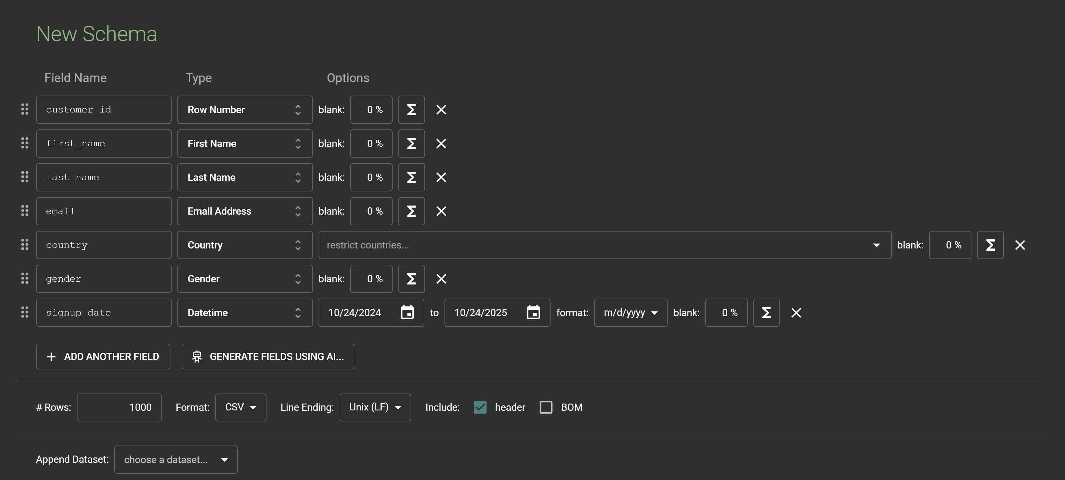 - Choose how many rows you want (the free version lets you generate up to 1,000).