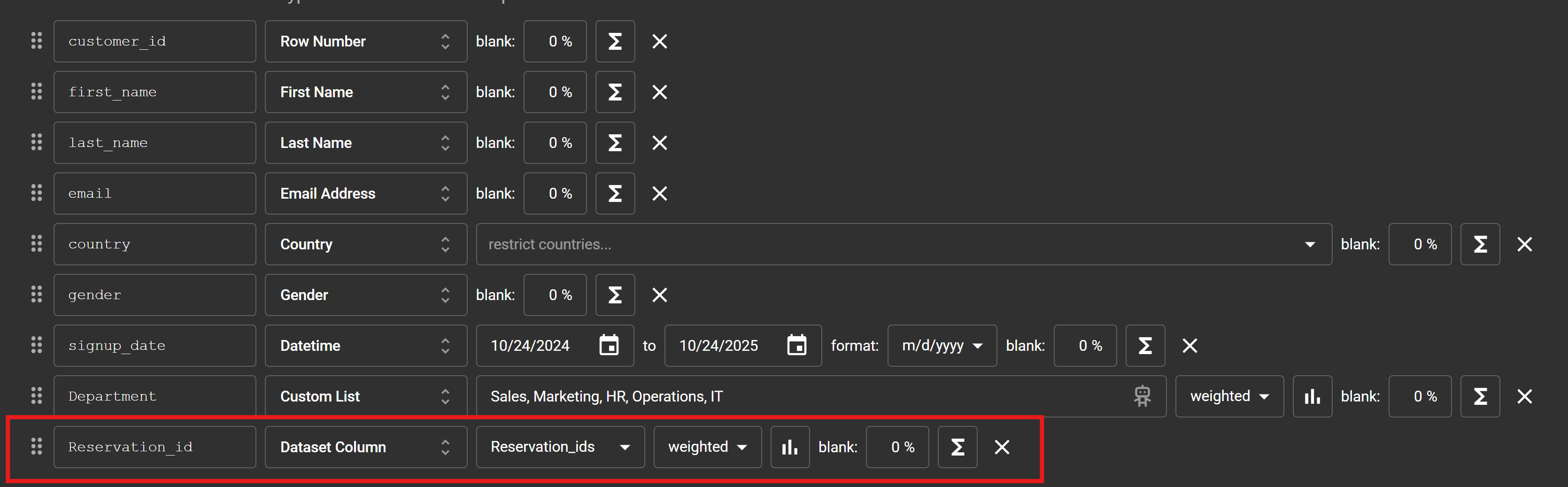 For example, if you already have a table of customers, you can generate a second dataset (e.g., “reservations”) and ensure it shares the same reservation_id values — allowing you to join them later for analysis.