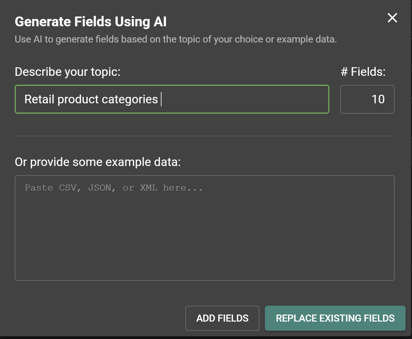 It’s great for quickly brainstorming new datasets when you’re not sure what fields to include.