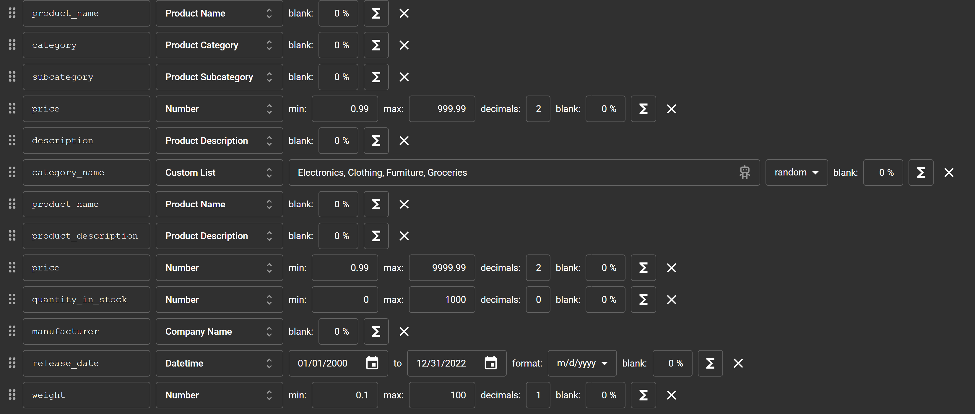 A newer feature in Mockaroo is the AI Field, which uses natural language to create custom lists or data types for you.