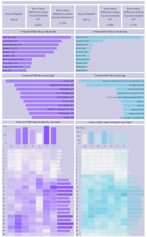 Auch diese Aufgabe empfand ich als sehr entspannend, da mir die Idee kam die Nutzung von Spotify der zwei Kollegen zu vergleichen.