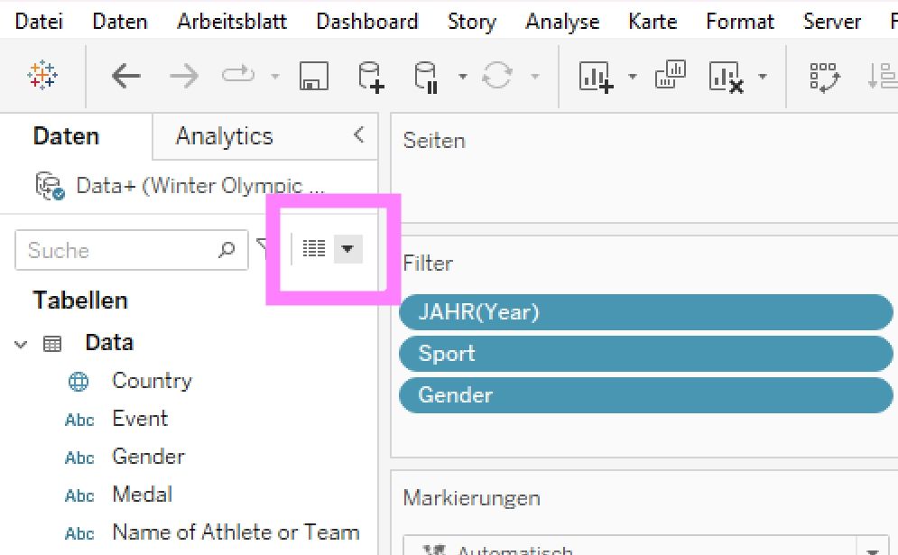 Ihr startet im Daten-Bereich links und klickt auf das Symbol rechts von der Suchleiste.