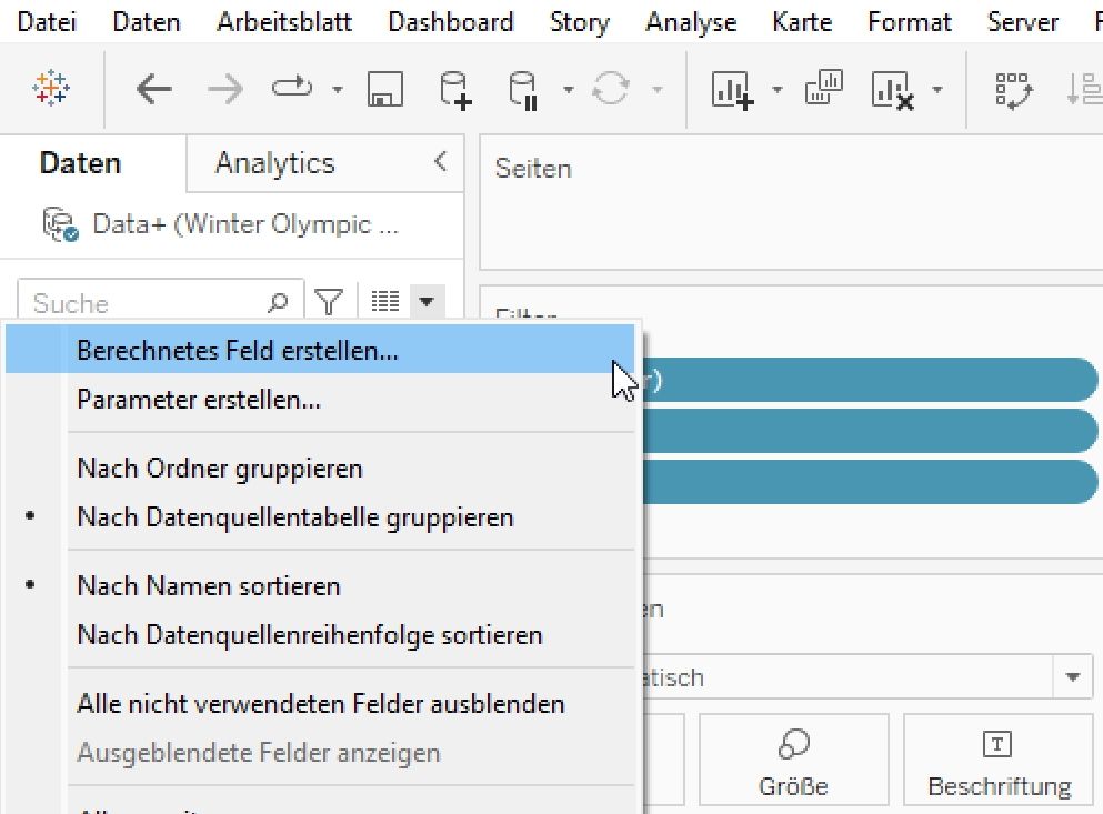 Wiederholt das so oft, wie ihr es braucht. Ich habe drei berechnete Felder gebraucht für mein Dashboard. Ihr findet diese dann links im Datenbereich wieder.