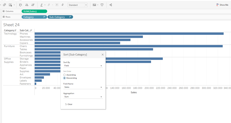 Then I create the following chart and sort my Rows :