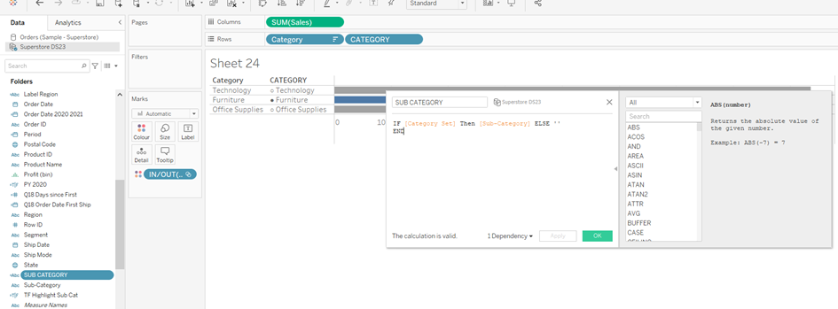 Then follows the next calculation for the Sub Category: