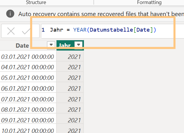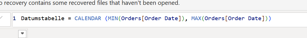 - Gib im Formelfeld oben diese Formel ein: Datumstabelle = CALENDARAUTO()