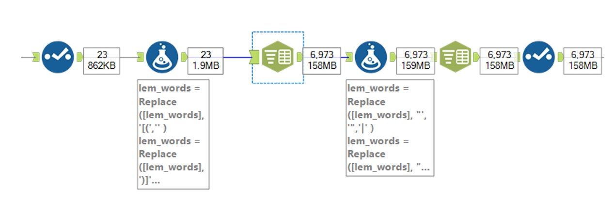 Im ersten Schritt habe ich mit der Datenvorbereitung angefangen. Nach ein paar Änderungen wurde ich mit einer Herausforderung konfrontiert: Die Spalte "words_wo_stopwords" ist eine Liste von Wörtern, deren delimiter aus mehreren Zeichen bestand ), ( .