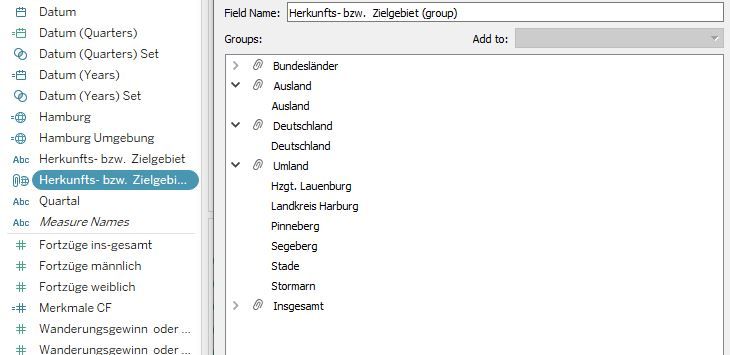 Jetzt kann man die Gruppen verwenden, indem man sie in einen Filter einfügt und den gewünschten Wert auswählt. Das hat mir bei der Berechnungen geholfen, aber nicht bei der Anzeige von geografischen Daten auf der Karte.