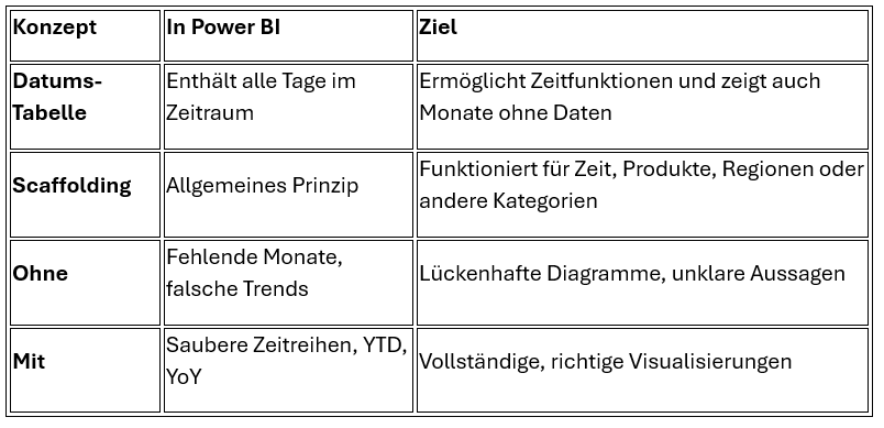 Die Datums-Tabelle ist also eine spezielle Form von Scaffolding für Zeit.
