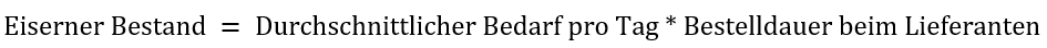 Der eiserne Bestand ist eine Kennzahl aus dem Einkauf und gibt eine Sicherheitsmenge an, die nicht unterschritten werden sollte. Reduziert sich die verfügbare Menge auf den eisernen Bestand, sollte man spätestens eine Bestellung aufgeben (Wenn nicht sogar schon beim Sicherheitsbestand). Der eiserne Bestand hilft einem Unternehmen also dabei, dass keine Lieferengpässe auftreten.