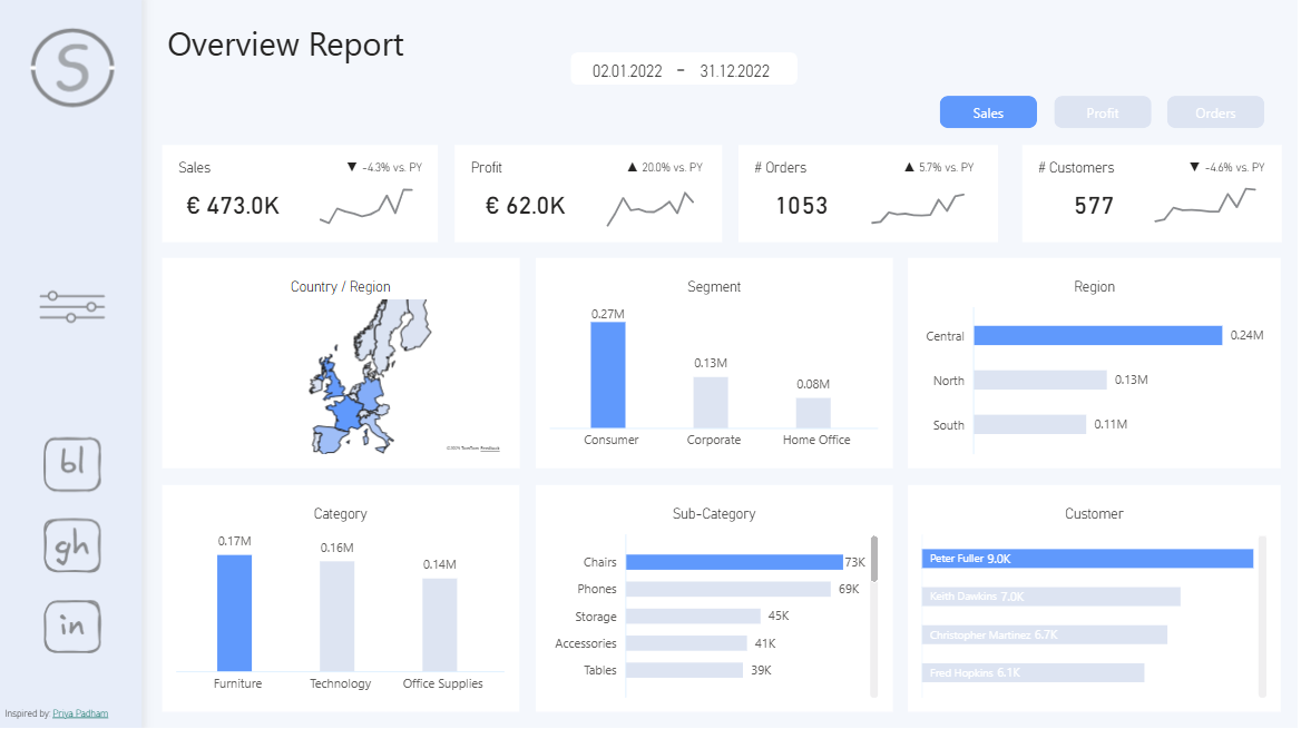 After exploring Microsoft's learning path and building a simple report on my own, I challenged myself by recreating one of the most favorited Dashboards on Tableau Public: Priya Padham's Superstore Overview Dashboard