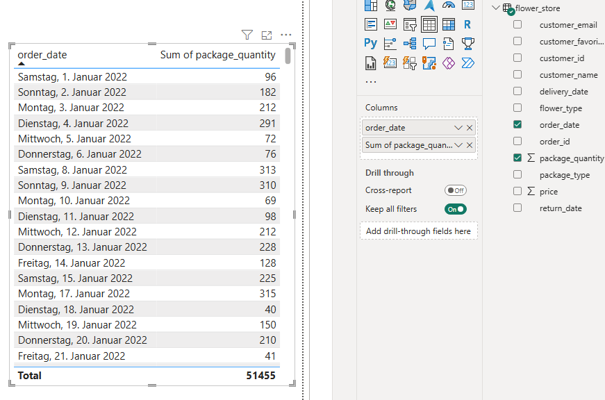 For example, we can't analyse how many bouquets were sold per month using just order date and quantity, we need further calculations.