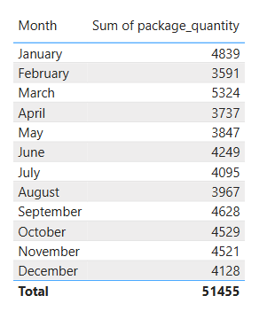 We can already use this table and without any calculations see how many bouqets were sold in each month:
