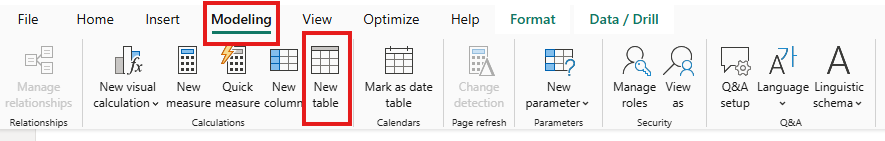 To create a star schema, we'll create a dimension table, containing all the dates in dataset using DAX expression.