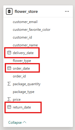 Most often this term is used for datasets with a few dates, as I have in this flower store purchase dataset: