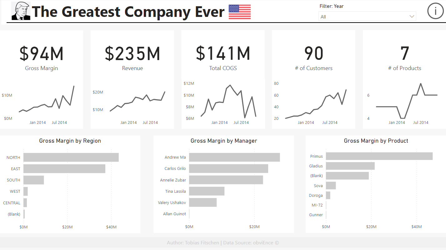 Und dann war der Spaß auch schon wieder vorbei. Bei dem sagenhaften Profit und einer amerikanischen Unternehmung konnte ich mir den Titel des Dashboards nicht verkneifen. Beinahe wäre der Titel allerdings "Shades of Grey" gewesen. Seht selbst.